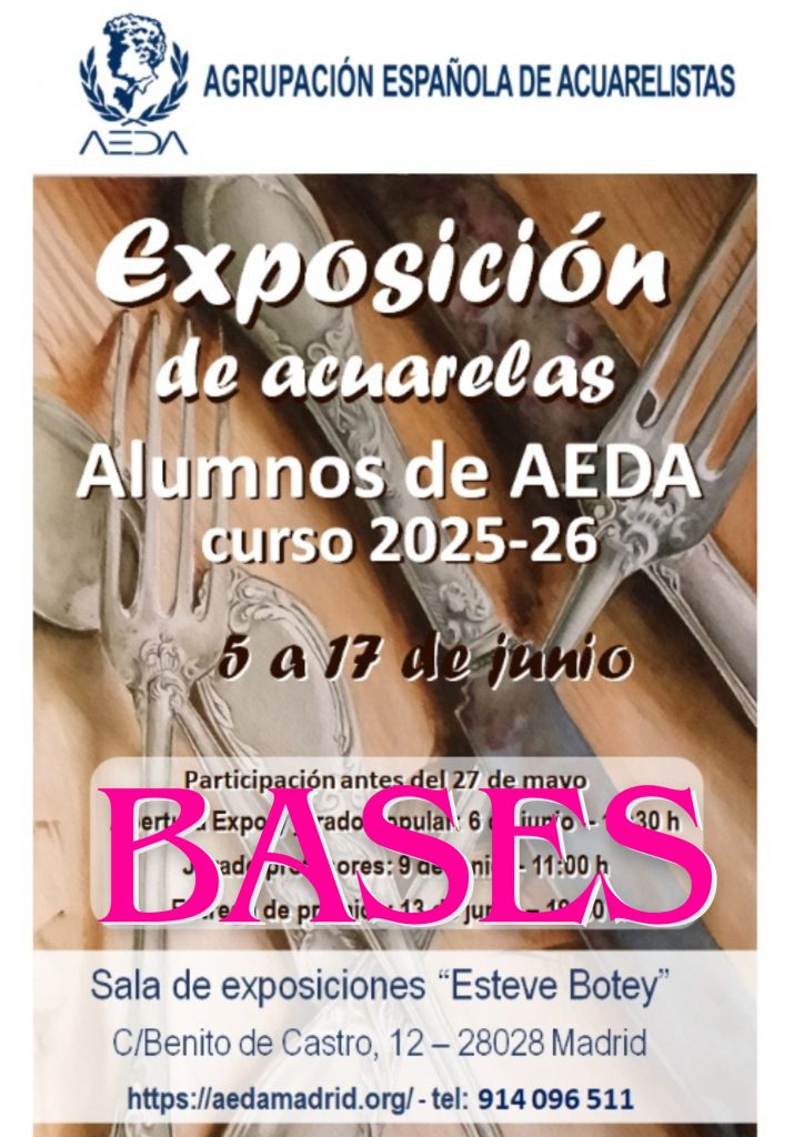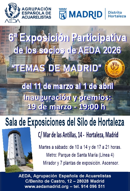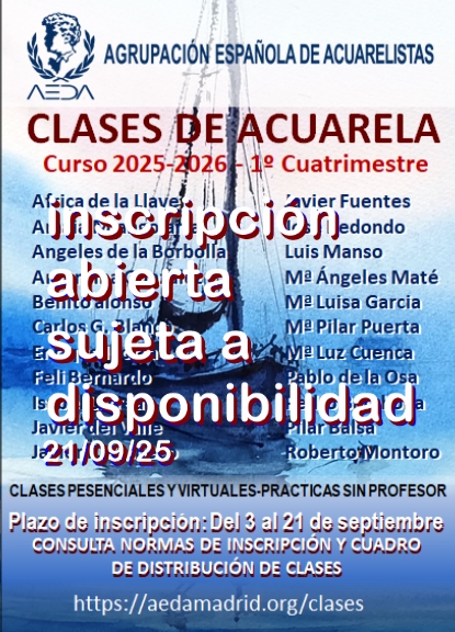 AEDA es una asociación activa, comprometida con la promoción y desarrollo de la acuarela. Aquí podrás encontrar información útil y de interés de las actividades organizadas por AEDA para sus socios y, en general, para todas las personas interesadas en el mundo de la acuarela y del arte.