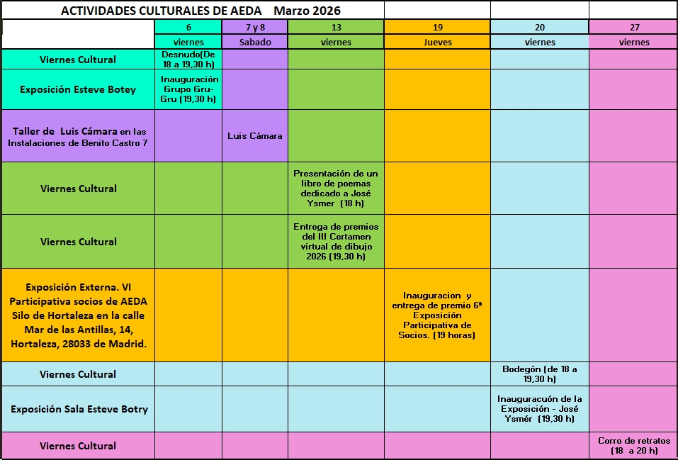 Infórmate de nuestras actividades programadas para los viernes culturales de AEDA.