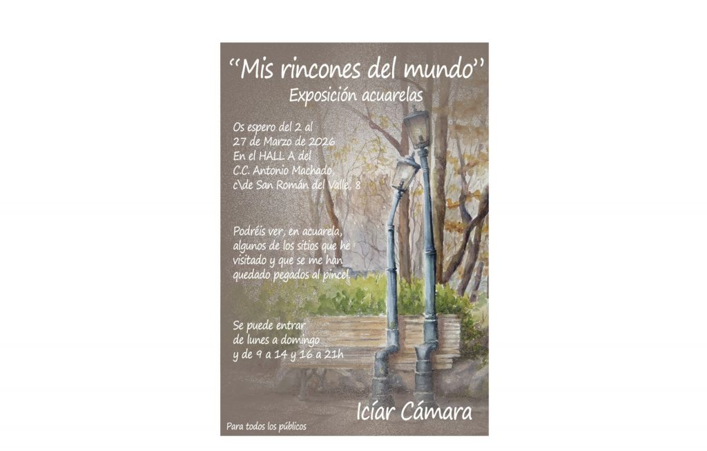 Exposición de Acuarelas «Mis rincones del mundo» de ICIAR CÁMARA en Madrid (del 2 al 27/3/2026)