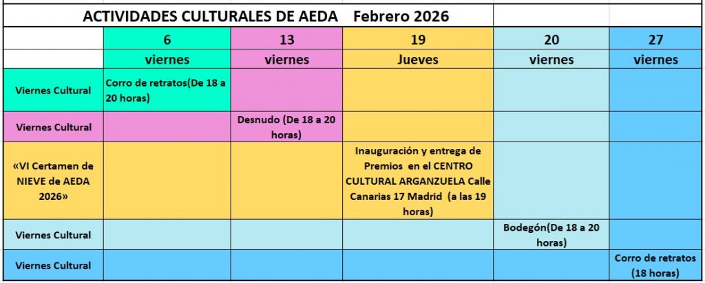 Infórmate de nuestras actividades programadas para los viernes culturales de AEDA.