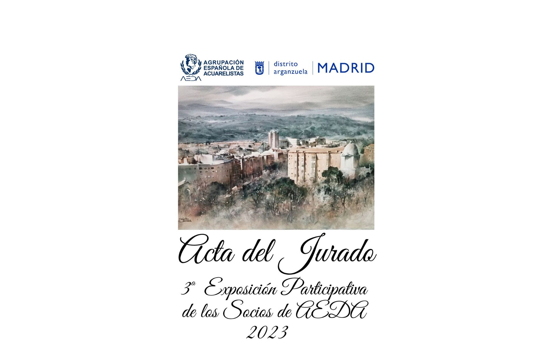 En Madrid, siendo las 11:30 horas del día 2 de marzo de 2023, de acuerdo con las Bases del Certamen de la III Exposición Participativa de los socios de AEDA, se hacen públicos los acuerdos alcanzados de la reunión del jurado, compuesto por los siguientes miembros: