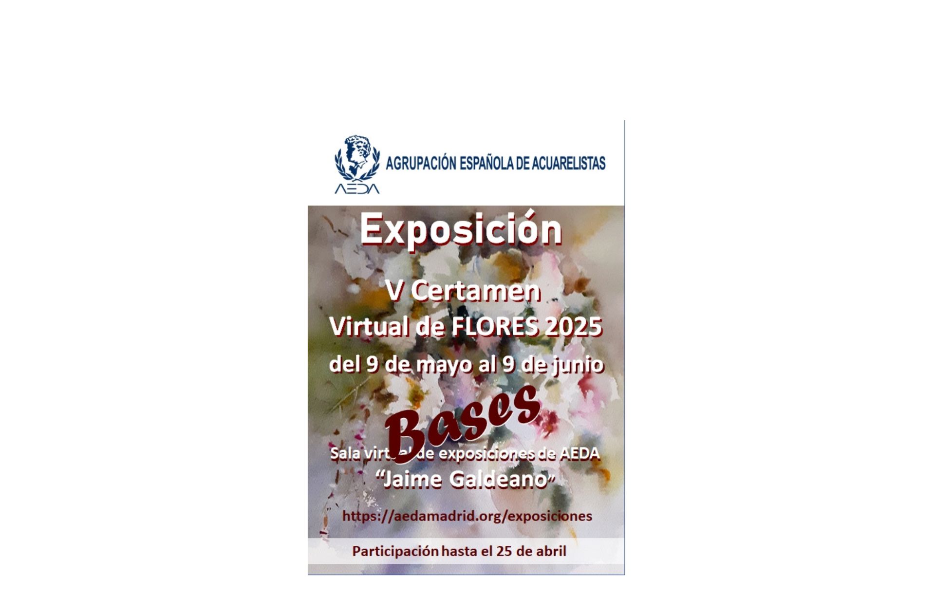Nos complace presentaros las BASES del V Certamen Virtual de FLORES -2025 de AEDA que va a tener lugar del 9 de mayo al 9 de junio de 2025 en la Sala Virtual de Exposiciones «Jaime Galdeano» de la página web de AEDA.