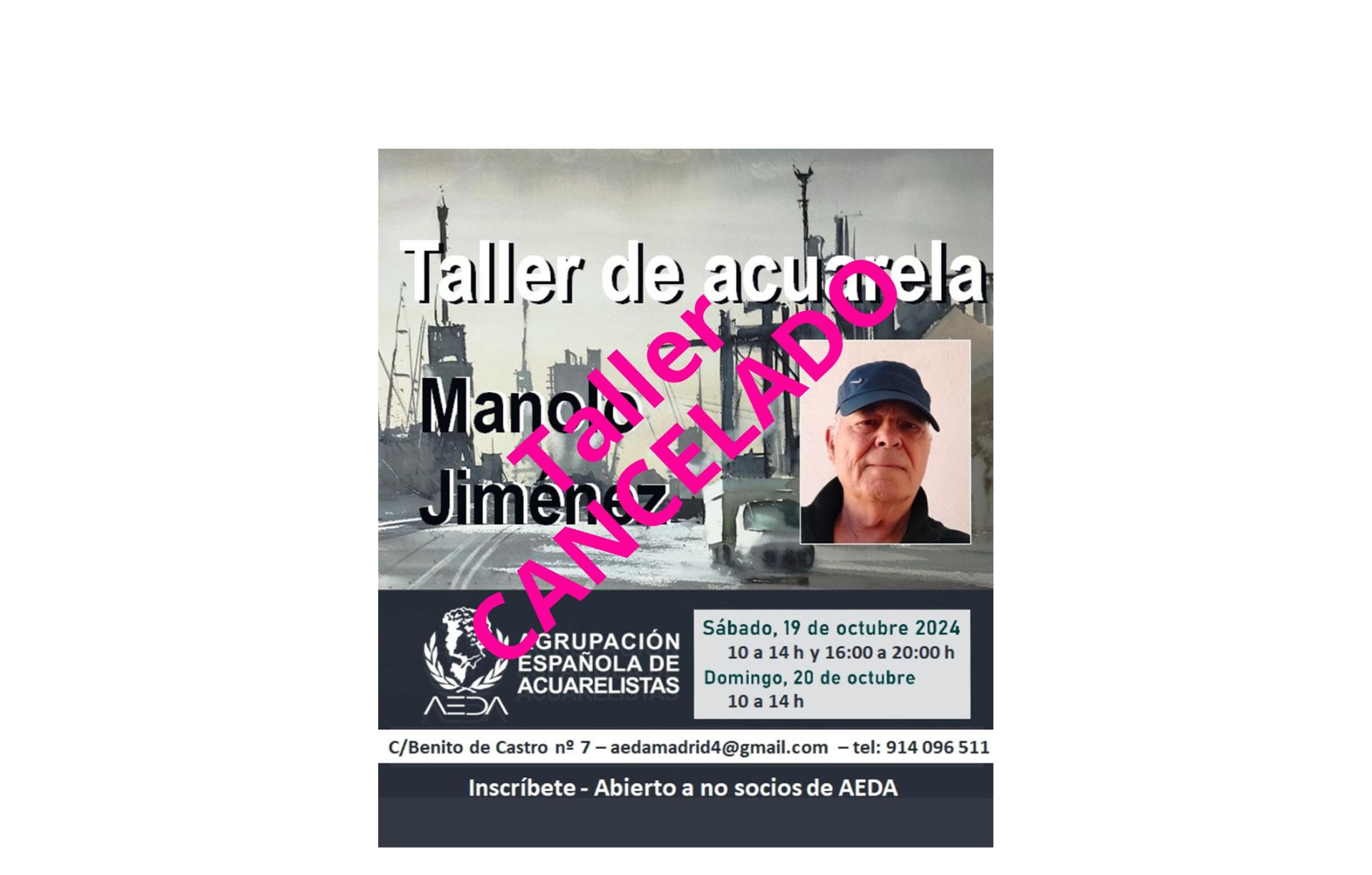 Lamentamos comunicaros que, por motivos de salud, queda cancelado el taller que tenía previsto impartir MANOLO JIMÉNEZ el 19 y 20 de octubre de 2024 en AEDA.