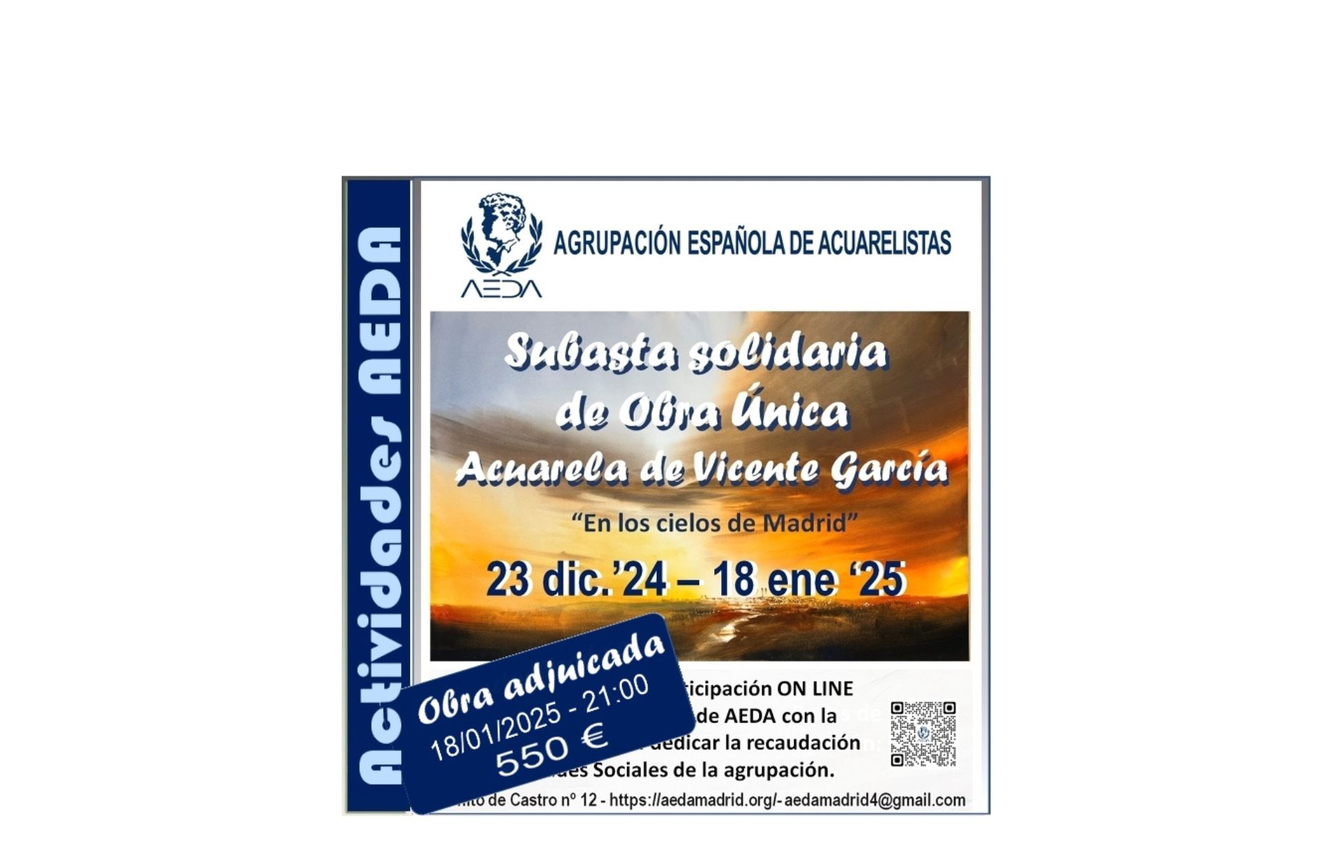 La Subasta Solidaria de la Obra «En los cielos de Madrid de Vicente García Fuentes ha llegado a su fin.