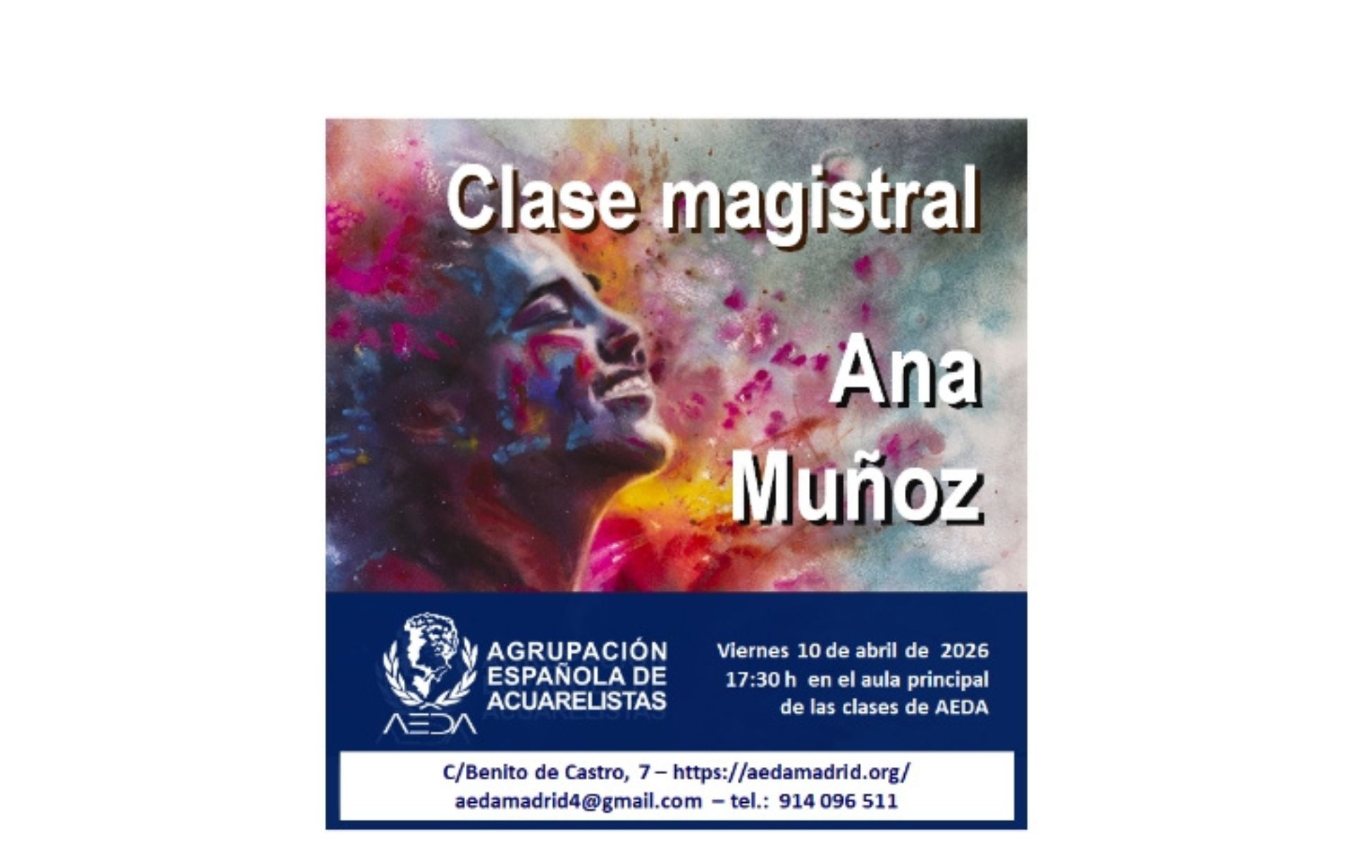 Nos es grato anunciaros que este prróximo viernes 10 de abril de 2026, a las 17:30 horas, ANA MUÑOZ va a impartir una demostración en presencial en el aula principal de nuestra sede en c/ Benito de Castro 7 , entresuelo de Madrid.