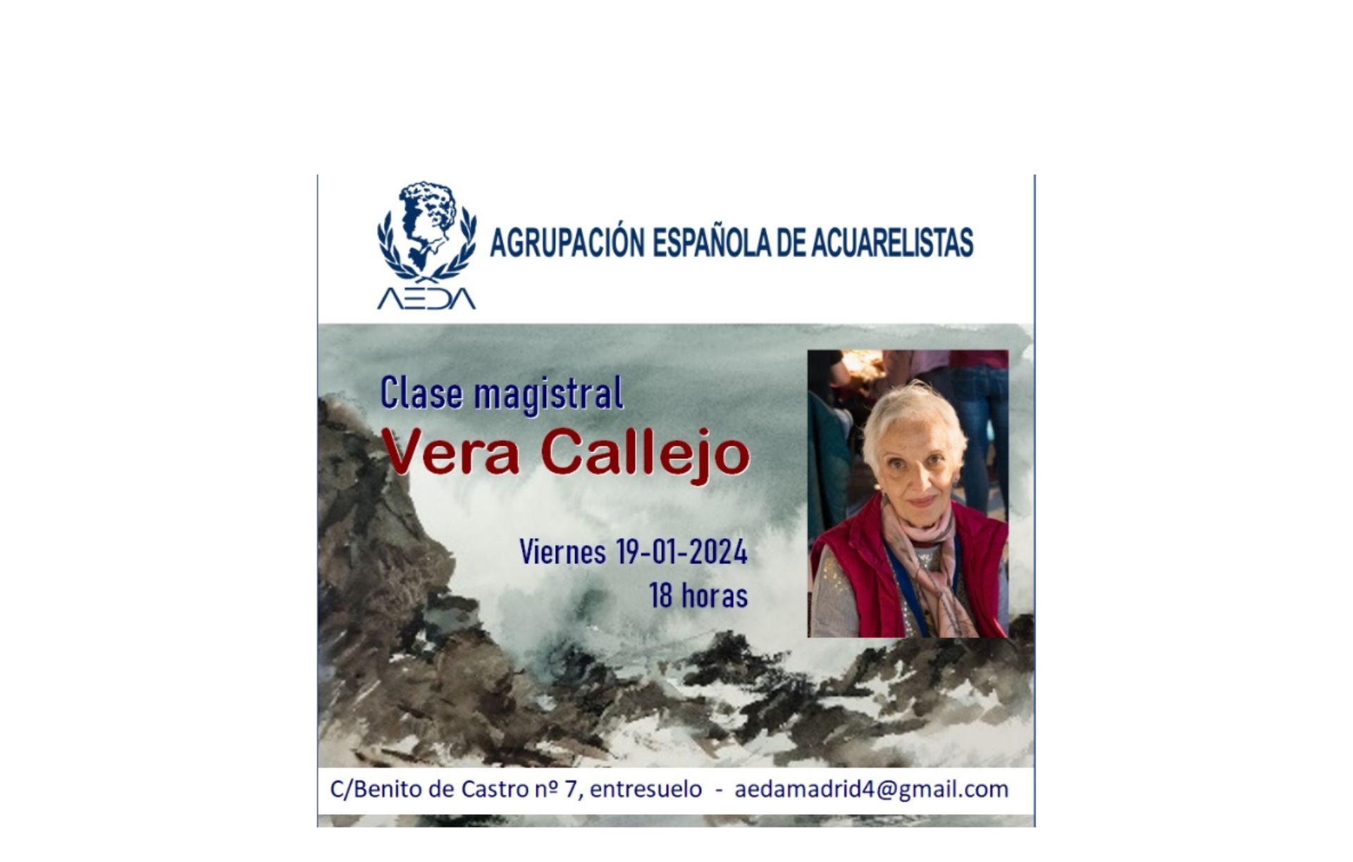 Nos es grato anunciaros que el próximo viernes 19 de enero de 2024, a las 18:00 horas, Carmen VERA CALLEJO va a impartir una clase magistral presencial en el aula principal de nuestra sede en c/ Benito de Castro 7 , entreplanta de Madrid.