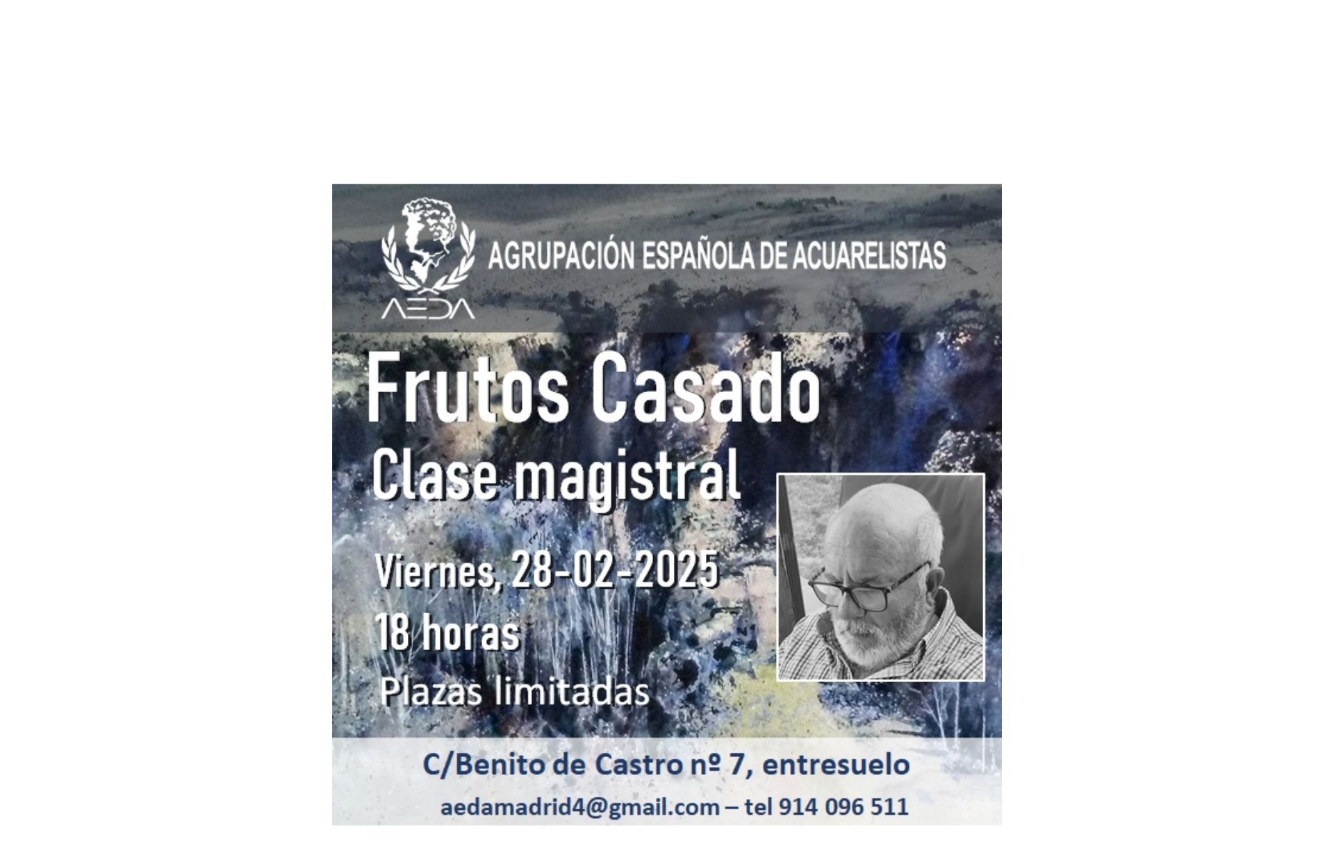 Nos es grato anunciaros que, a las 18:00 horas del viernes 28 de febrero de 2025, FRUTOS CASADO va a impartir una Clase Magistral presencial en el aula principal de nuestra sede en c/ Benito de Castro 7 , entresuelo de Madrid.