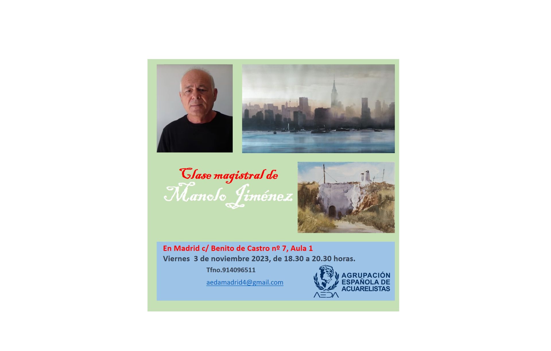 Nos es grato anunciaros que el viernes 3 de noviembre, a las 18:00 horas, MANOLO JIMÉNEZ va a impartir una clase magistral presencial en el aula principal de nuestra sede en c/ Benito Castro 7 , entreplanta de Madrid.