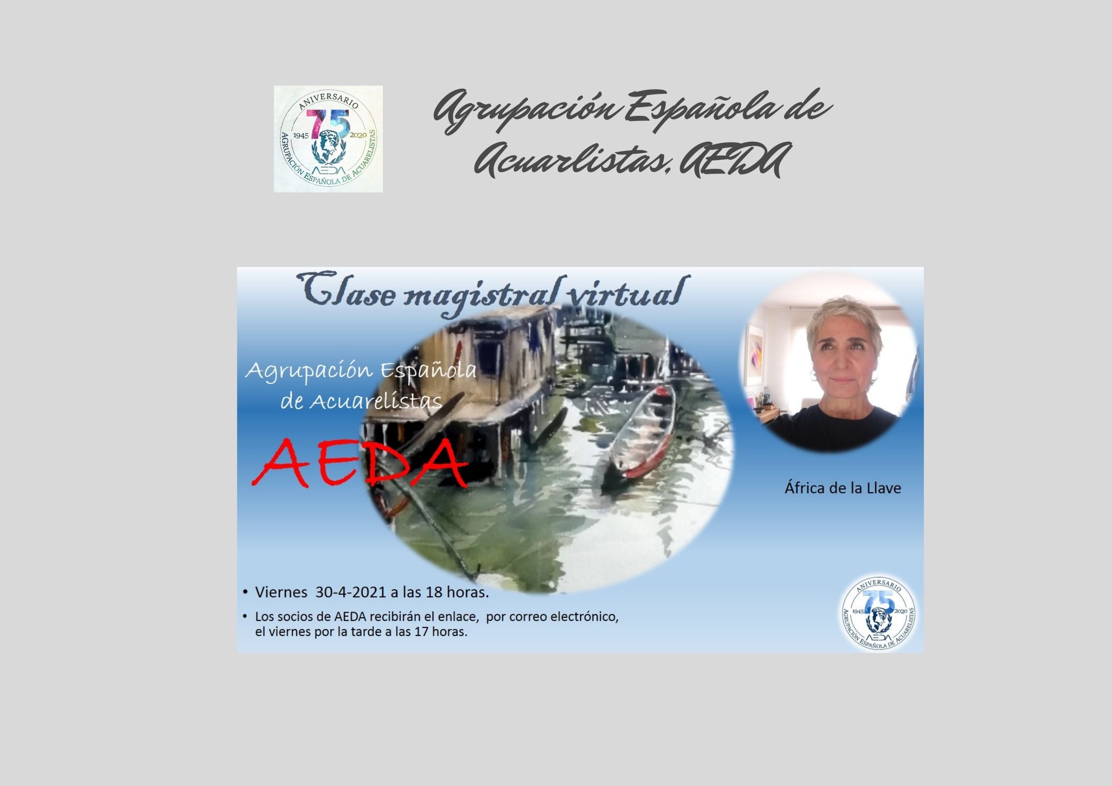 Ya sabéis que NO es necesario que os apuntéis previamente en Secretaría pues se mandará el mismo viernes, una hora antes, el correo con el enlace de acceso  a todos los socios de AEDA y diferentes Asociaciones Acuarelistas que han mostrado su interés en presenciar estas clases magistrales virtuales en directo.