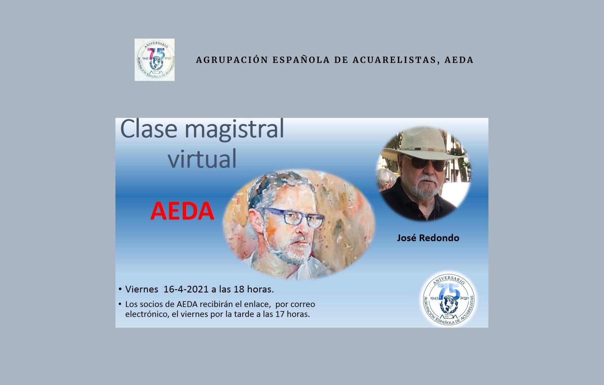 Clase magistral virtual de JOSÉ REDONDO el viernes 16 de abril de 2021 a las 18:00.