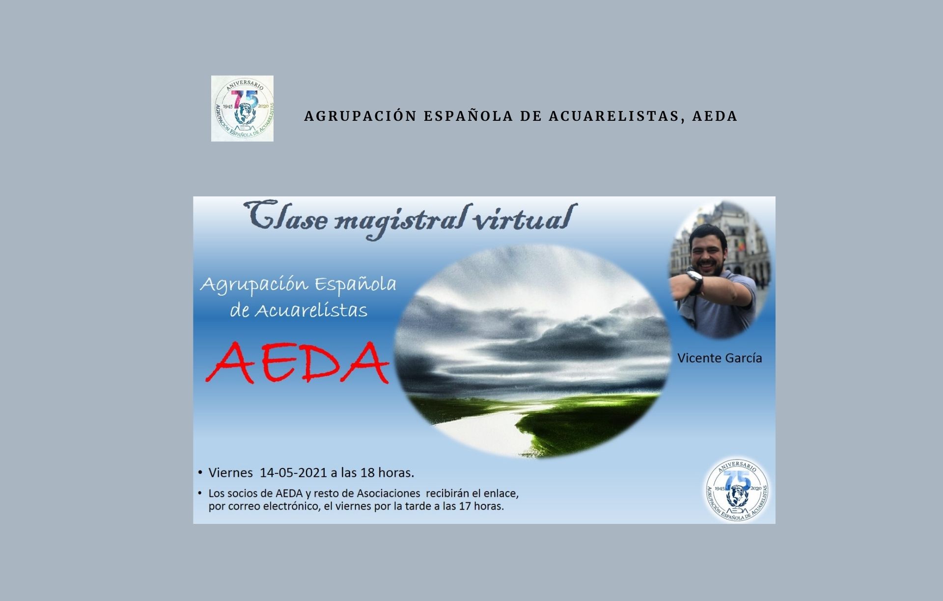 Nos es grato informaros de la próxima clase magistral virtual que va a impartir Vicente García el próximo viernes día 14 de mayo de 2021, a las 18:00 horas