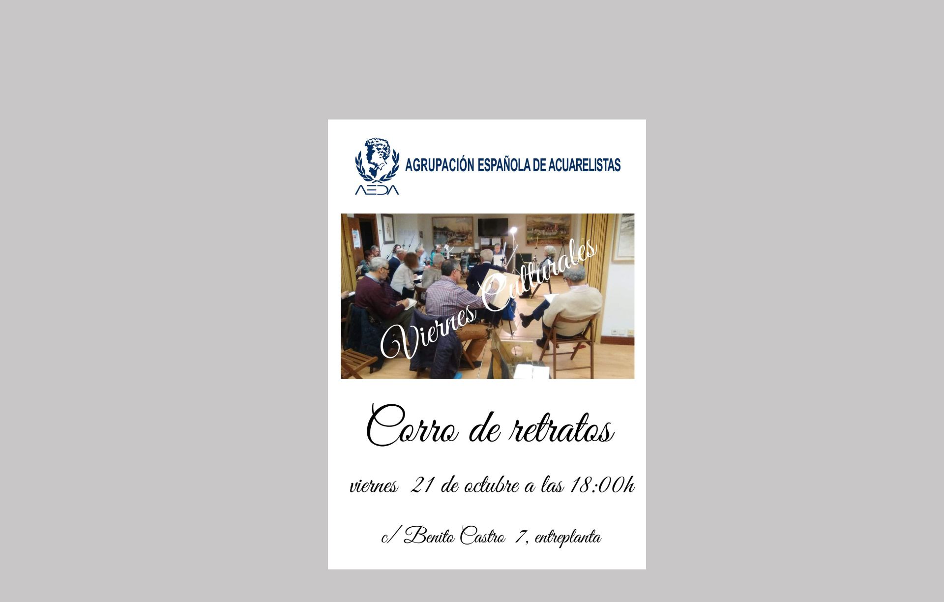 Este próximo viernes 21 de octubre de 2022 continuamos nuestras actividades habituales de los «Viernes Culturales», con una nueva sesión de «Corro de retratos«.