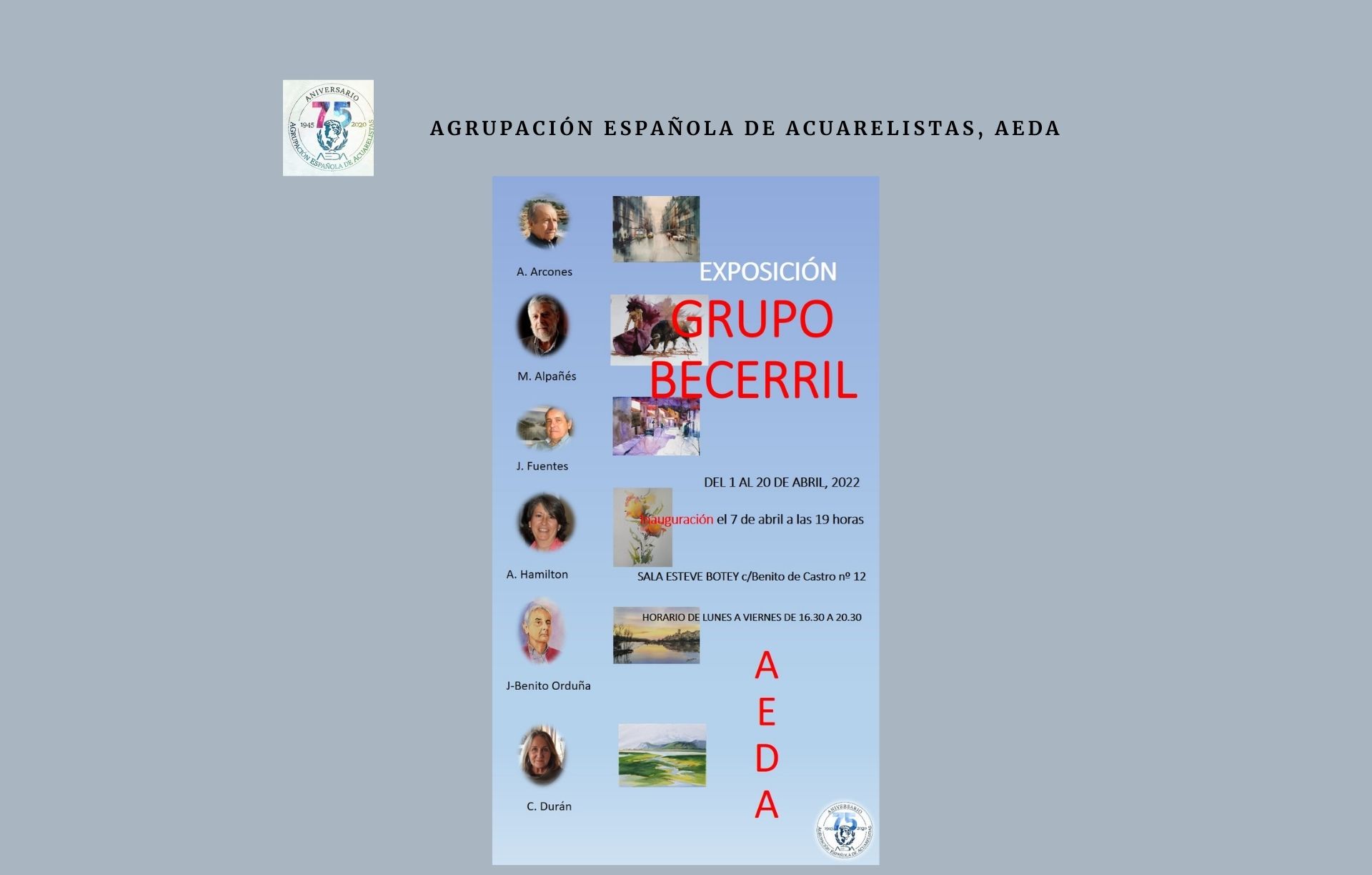 Del 1 al 20 de abril expone en AEDA el GRUPO BECERRIL en la Sala de Exposiciones “Esteve Botey” de AEDA, sita en c/ Benito Castro 12 , Bajo izquierda – Madrid.