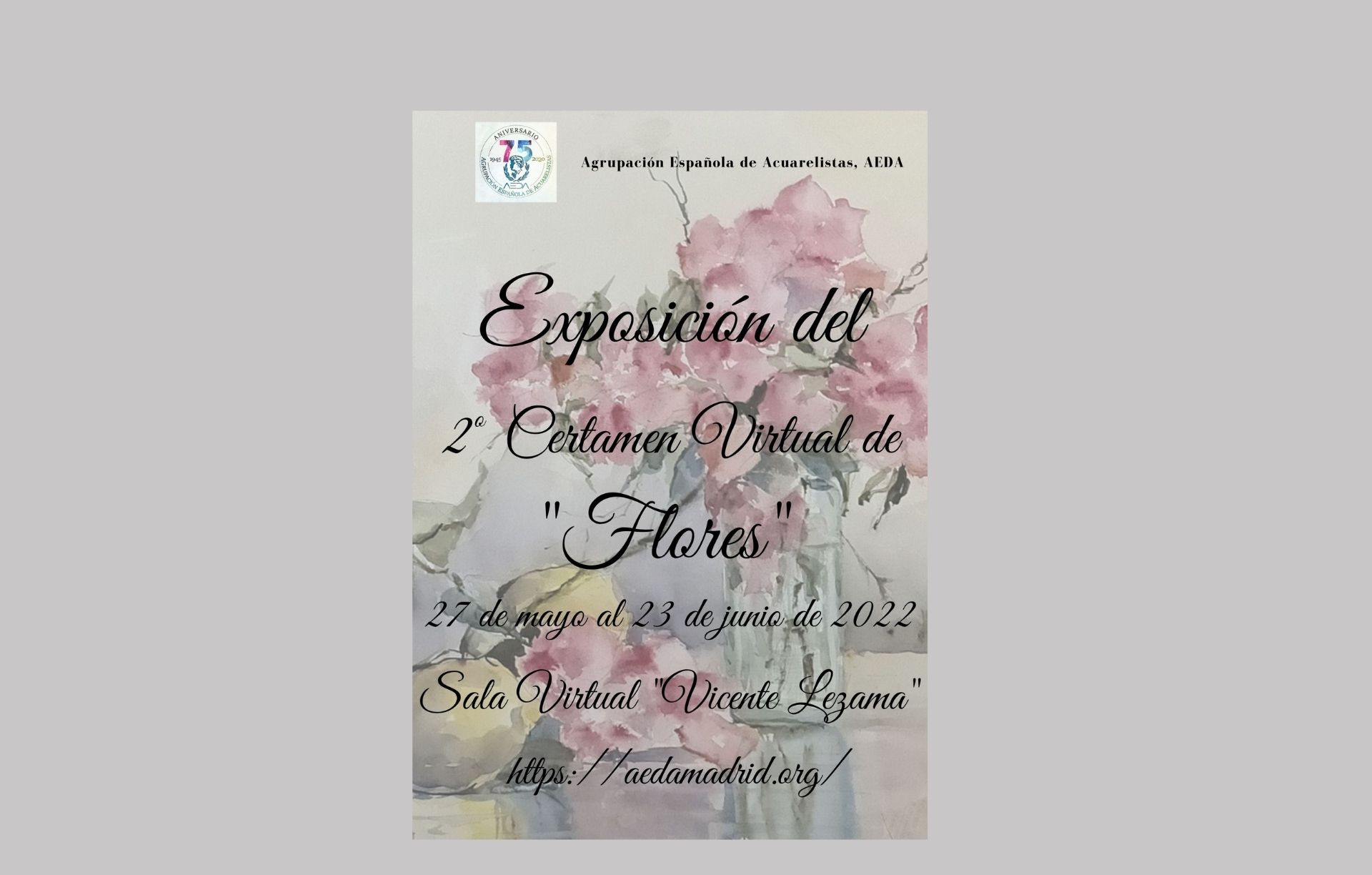 La Agrupación Española de Acuarelistas tiene el placer de invitaros a la exposición del 2º Certamen Virtual de FLORES de AEDA en la Sala Virtual “Vicente Lezama” de la página WEB de AEDA . La inauguración tendrá lugar este viernes 27 de mayo y estará disponible hasta el 23 de junio de 2022.