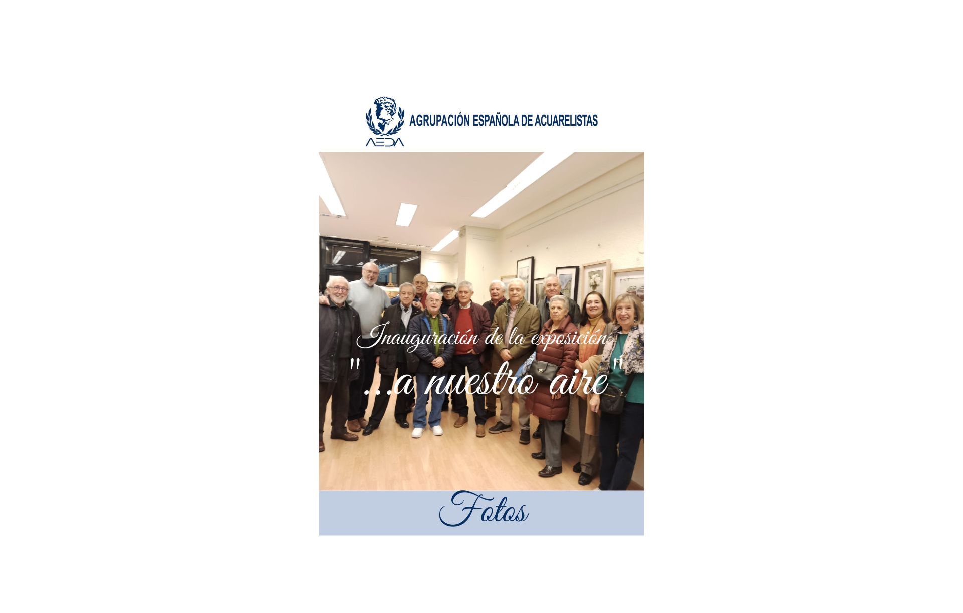 Este 2 de diciembre ha tenido lugar la inauguración de la exposición de acuarelas del Grupo «…a nuestro aire». Esta exposición está compuesta por 43 acuarelas del siguiente colectivo de socios de AEDA (por orden alfabético):