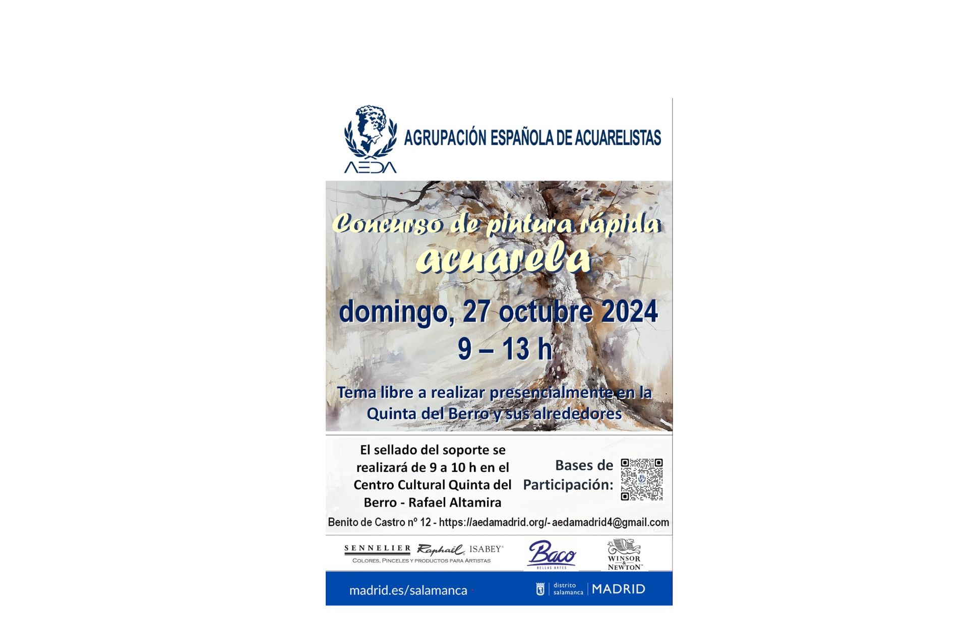 La Agrupación Española de Acuarelistas, AEDA, convoca la 2ª edición del CONCURSO DE PINTURA RÁPIDA A LA ACUARELA, a celebrar en la quinta del Berro- Rafael Altamira y sus alrededores.