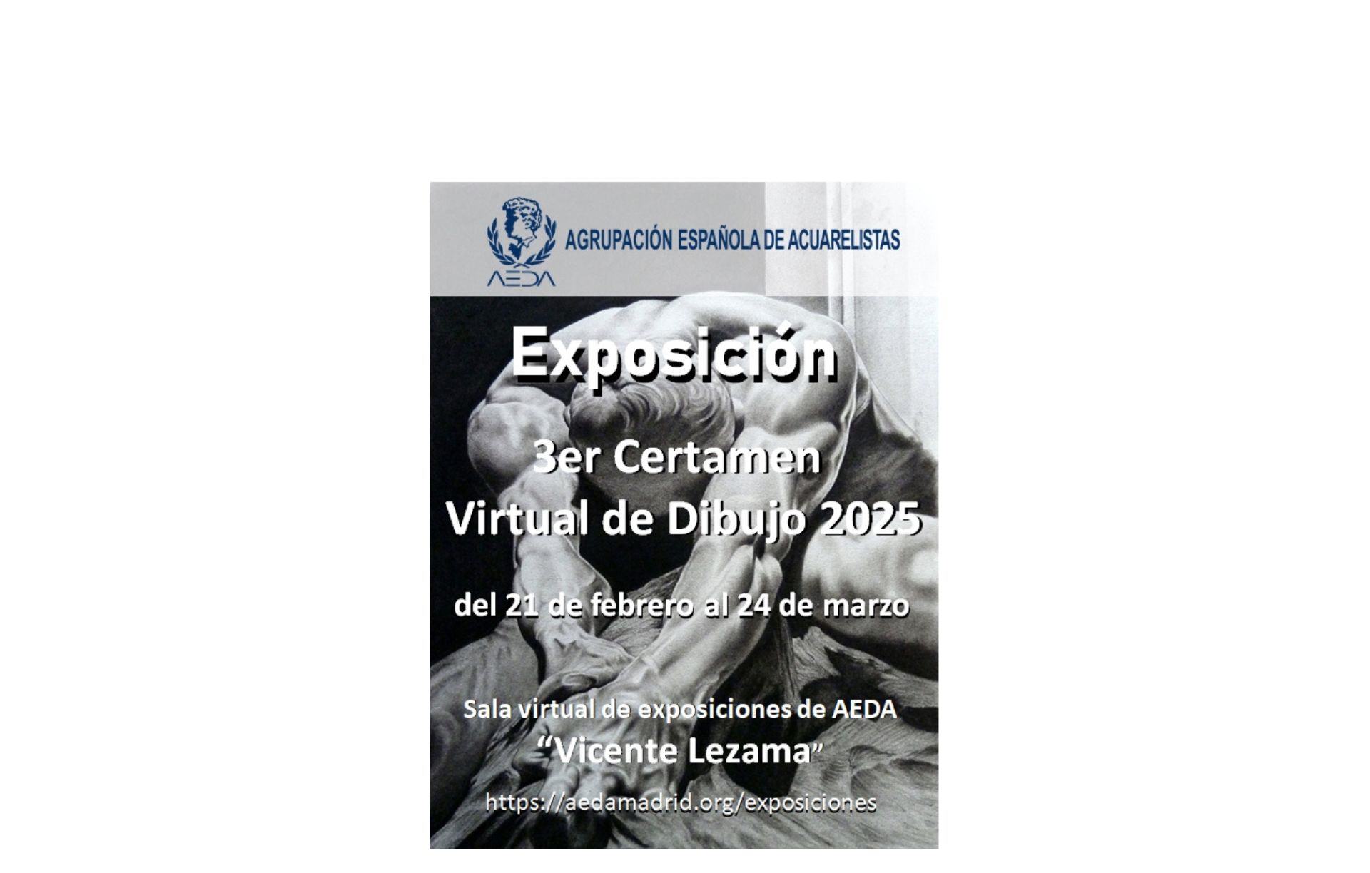 La Agrupación Española de Acuarelistas se complace en invitaros a la inauguración de la exposición del «III Certamen Virtual de DIBUJO de AEDA», que tendrá lugar hacia las 18:00 horas del próximo viernes 21 de febrero de 2025, en la Sala Virtual de Exposiciones de la página web de AEDA.