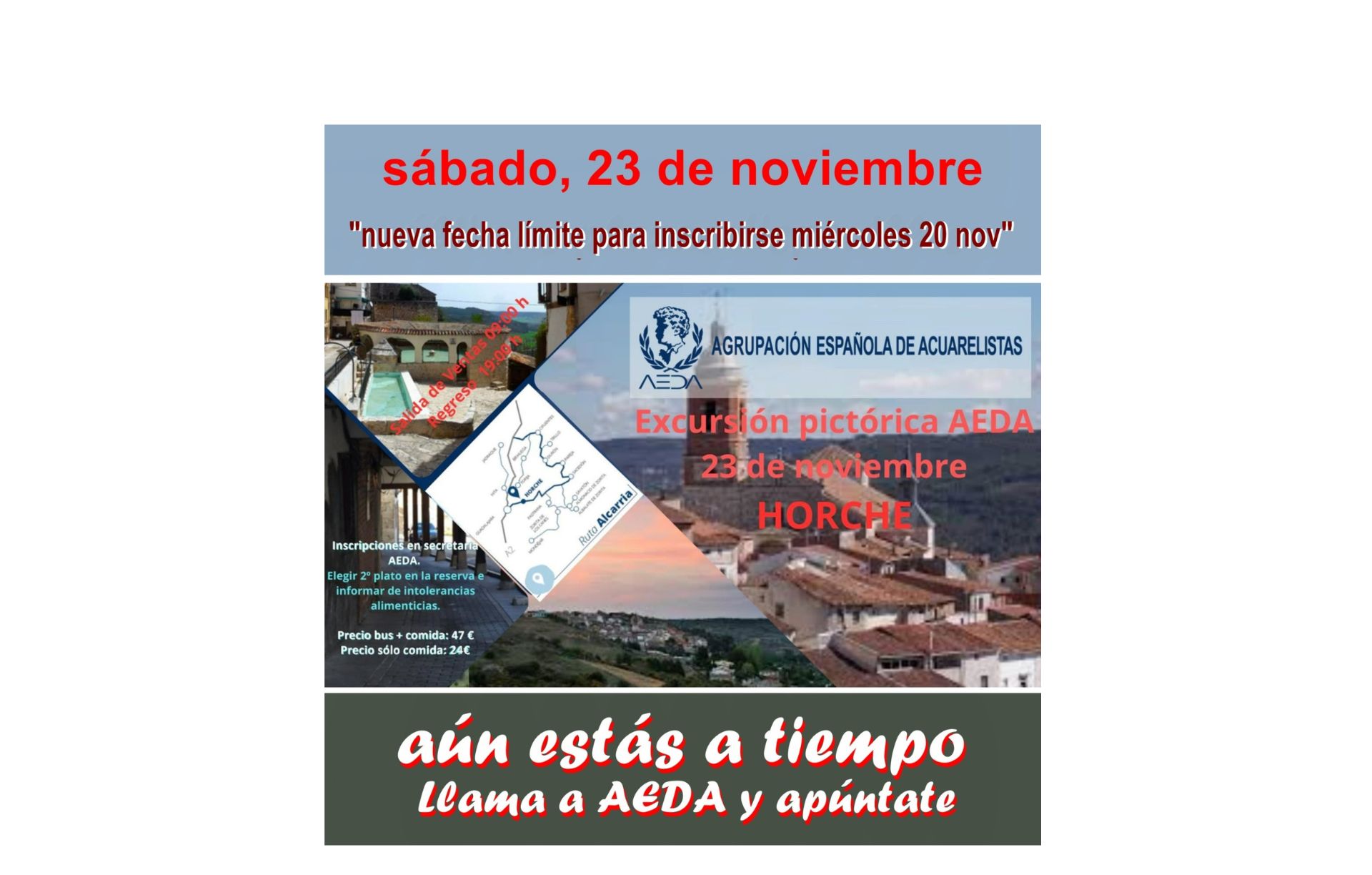 Puedes inscribirte hasta el próximo miércoles 20 de noviembre, bien llamando a Mandi en Secretaría de AEDA o bien enviado un email (aedamadrid4@gmail.com), al objeto de ajustar la planificación de la excursión, especialmente en lo que se refiere a las reservas del autobús y del restaurante.