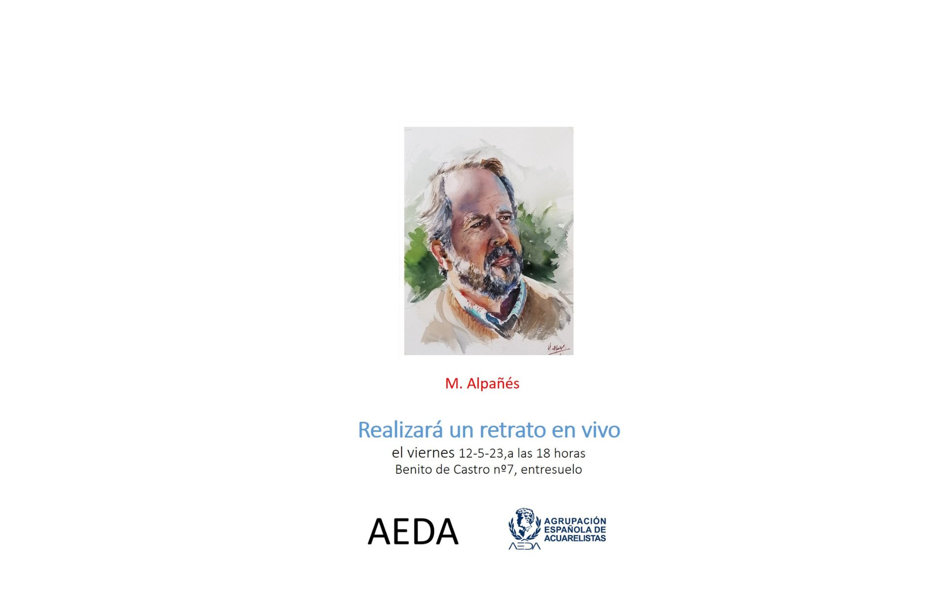 MANUEL ALPAÑÉS realizará un retrato en vivo el viernes 12 de mayo de 2023