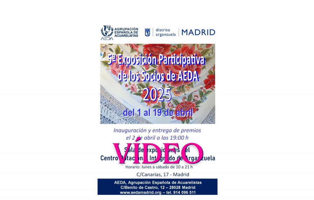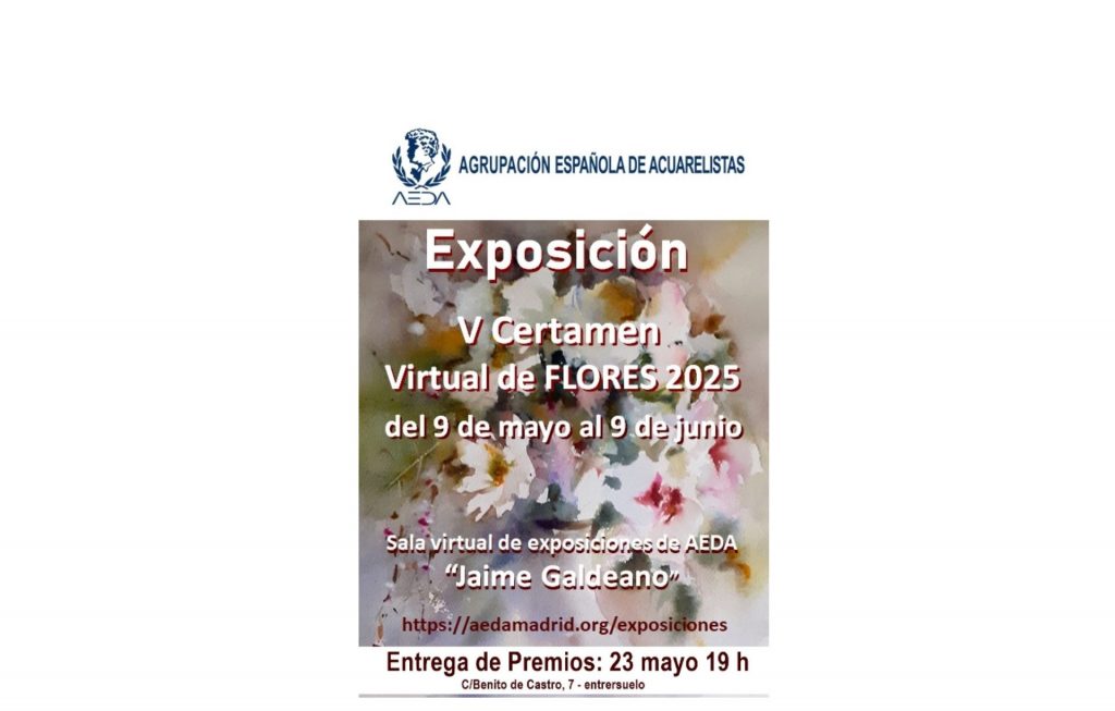 Queridos amigos, La Agrupación Española de Acuarelistas se complace en invitaros a la inauguración de la exposición del «V Certamen Virtual de FLORES 2025 de AEDA», que tendrá lugar hacia las 18:00 horas del próximo viernes 9 de mayo de 2025, en la Sala Virtual de Exposiciones de esta página web de AEDA. La entrega de premios tendrá lugar […]