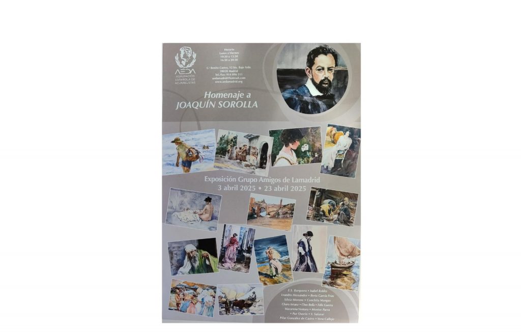 Queridos amigos, La Agrupación Española de Acuarelistas se complace en invitaros a la inauguración de la exposición «Homenaje a JOAQUÍN SOROLLA» de Vera Callejo y el Grupo de amigos de Lamadrid, que tendrá lugar a las 19:30 horas del próximo jueves 3 de abril de 2025, en la Sala de Exposiciones «Esteve Botey» de nuestra sede, sita en c/ […]