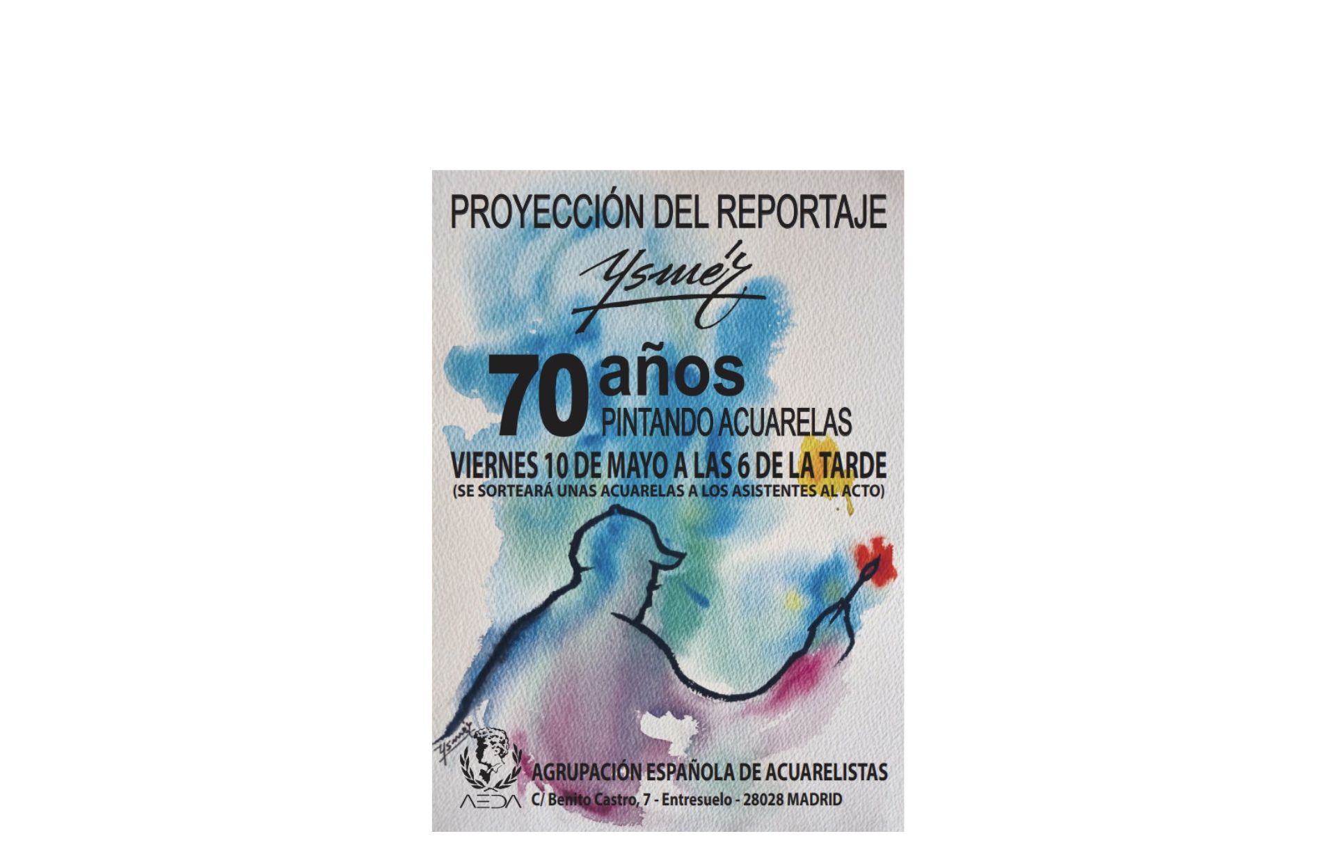 Nos complace invitaros a la proyección del reportaje «Ysmér 70 años pintando acuarelas» que va a tener lugar a las 18:00 horas del viernes 10 de mayo de 2024, en nuestras instalaciones de aulas en c/ Benito de Castro 7, entresuelo de Madrid.
