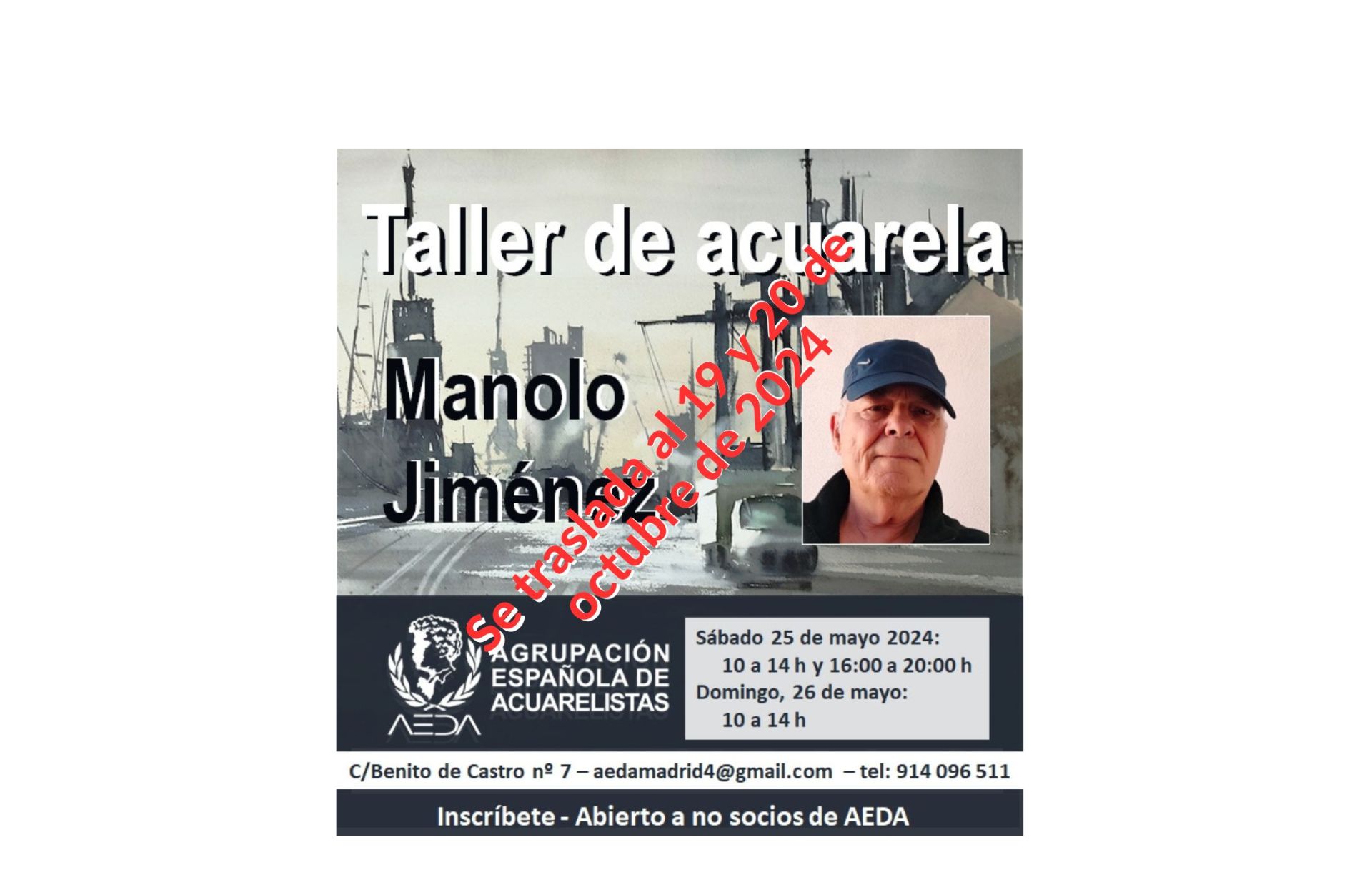 Debemos informaros que el taller de acuarela dirigido por MANOLO JIMÉNEZ se ha trasladado al sábado 19 y domingo 20 de octubre de 2024.