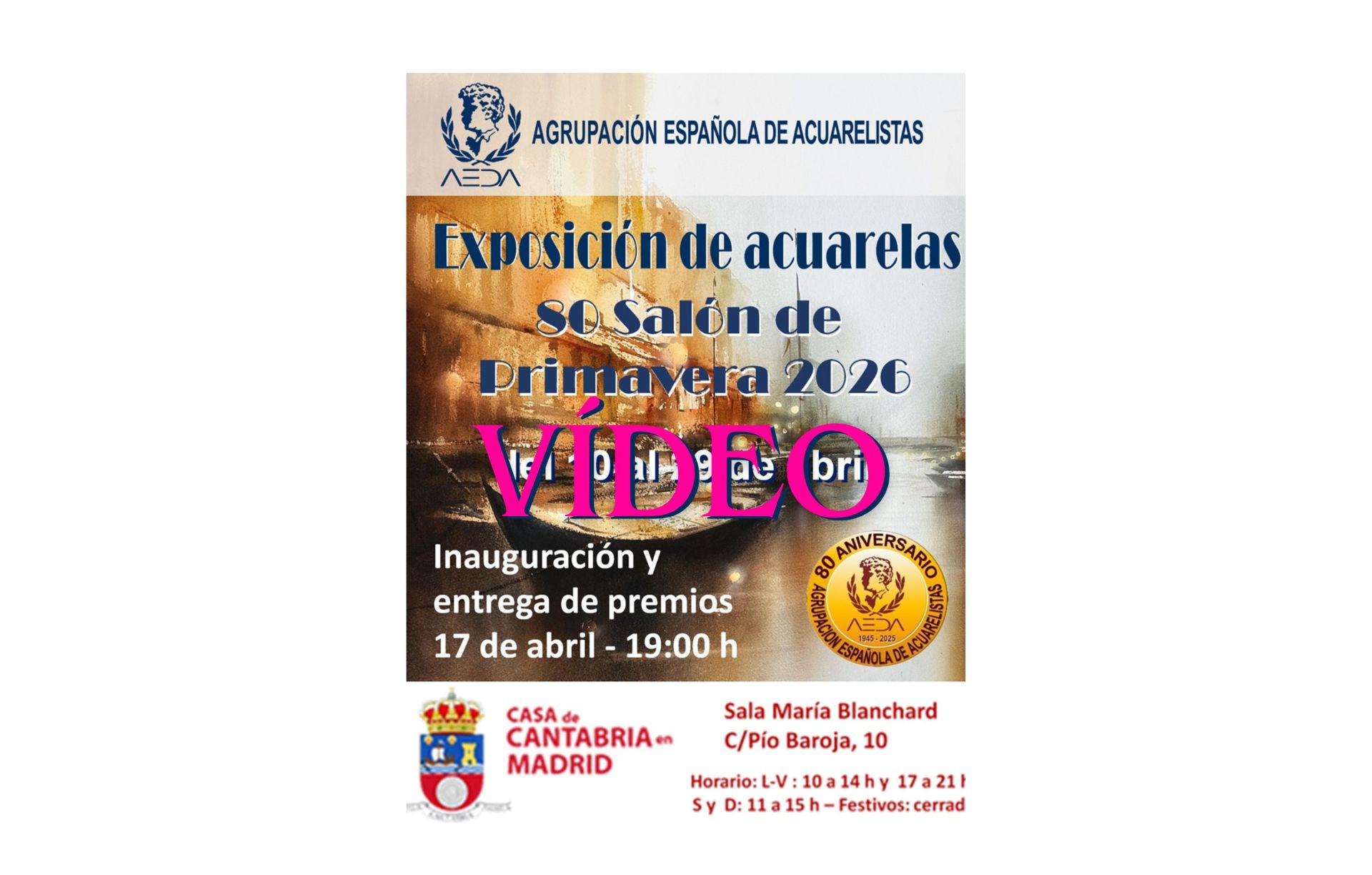 Nos complace acompañaros el vídeo de la inauguración y entrega de Premios del «80 Salón de Primavera de AEDA – 2026»: