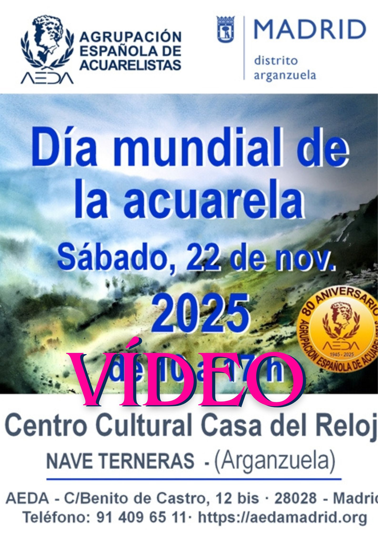 Nos complace acompañaros el vídeo del «Día Mundial de la Acuarela» que celebramos, dentro de las actividades del 8o aniversario de AEDA, el pasado 22 de noviembre de 2025, en el Centro Cultural de la Casa del Reloj – Nave Terneras- de Arganzuela (Madrid).
