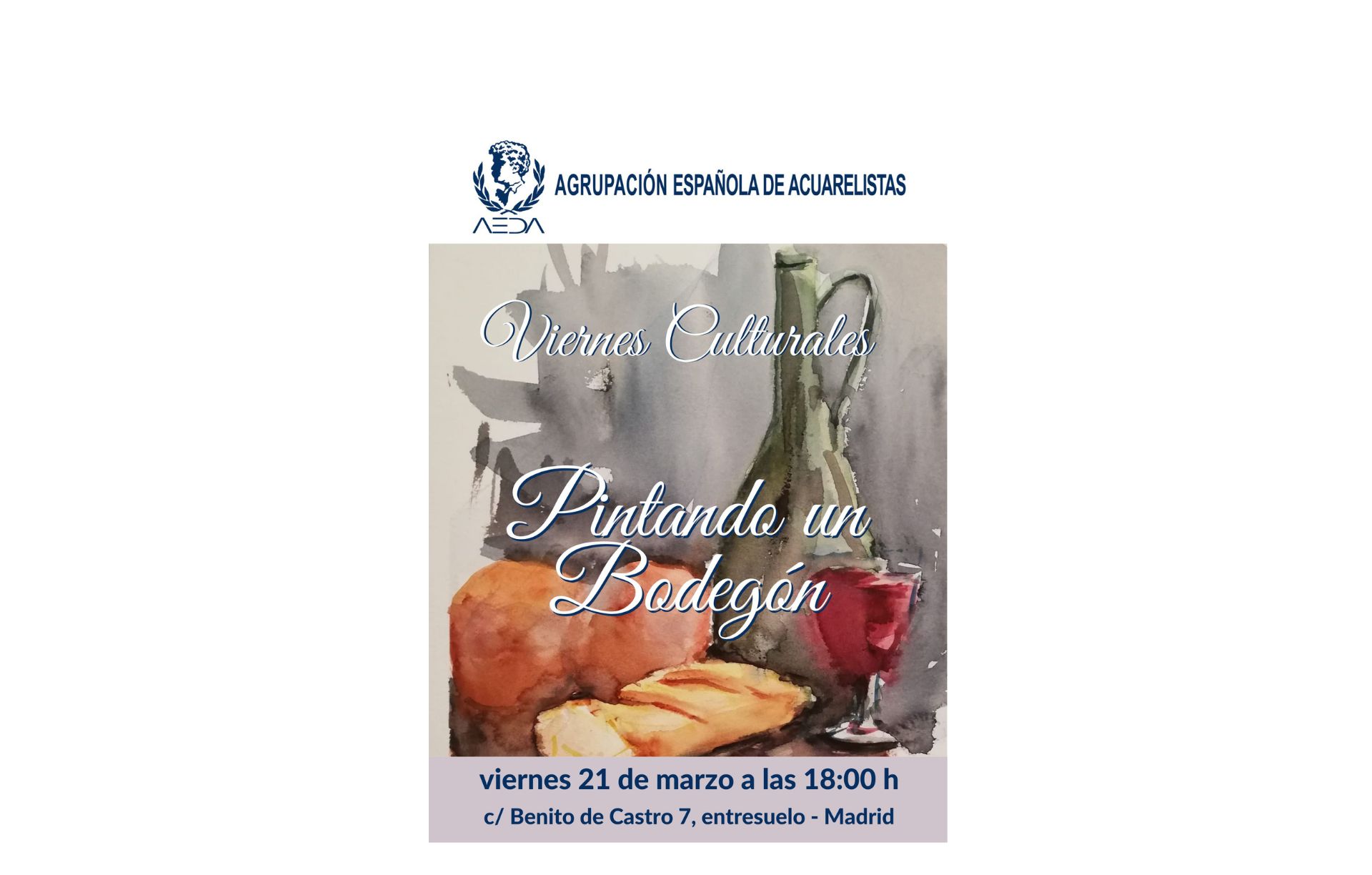 El viernes 21 de marzo de la próxima semana, continuando las actividades de los «Viernes Culturales» , tenemos una sesión de «Pintando un bodegón« .