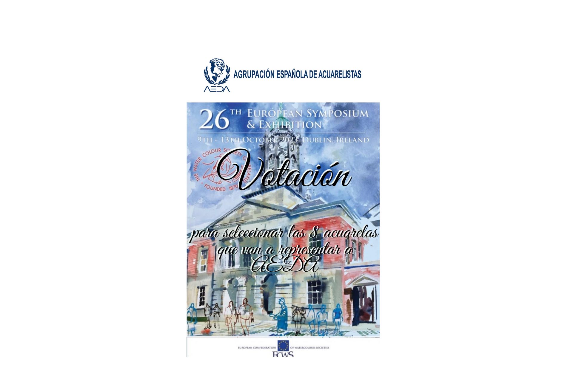 Queridos amigos, iniciamos la votación entre todos los socios de AEDA, excepto los que han presentado obra, para seleccionar las 8 acuarelas que nos representarán en el simposio de Dublín.