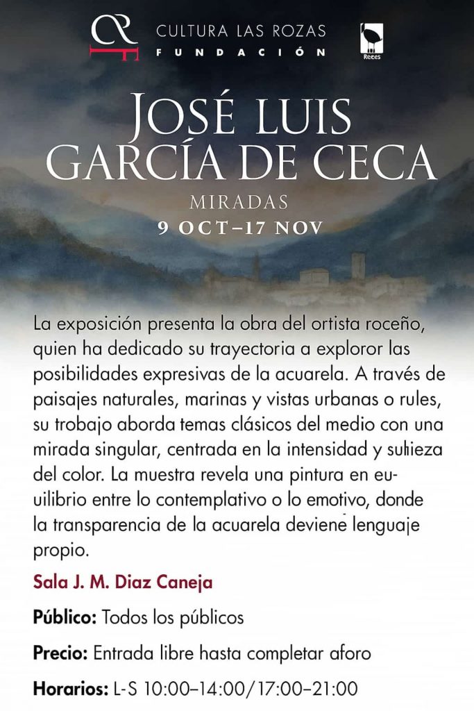Esta exposición estará en la sala J.M. Diaz Caneja del Centro Cultural Perez de la Riva sito en la calle Principado de Asturias 28 de la localidad de Las Rozas de Madrid. Estará abierta desde el próximo 9 de octubre hasta el 17 de noviembrede lunes a sábado de 10 a 14h y de 17 a 21h y la entrada es gratuita.