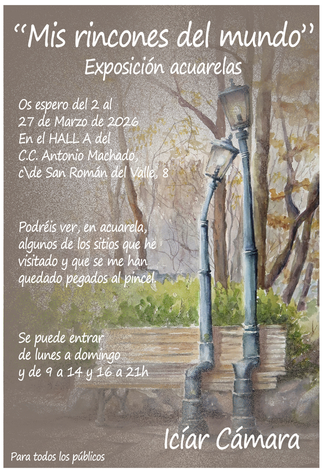 Exposición de Acuarelas «Mis rincones del mundo» de ICIAR CÁMARA en Madrid (del 2 al 27/3/2026)