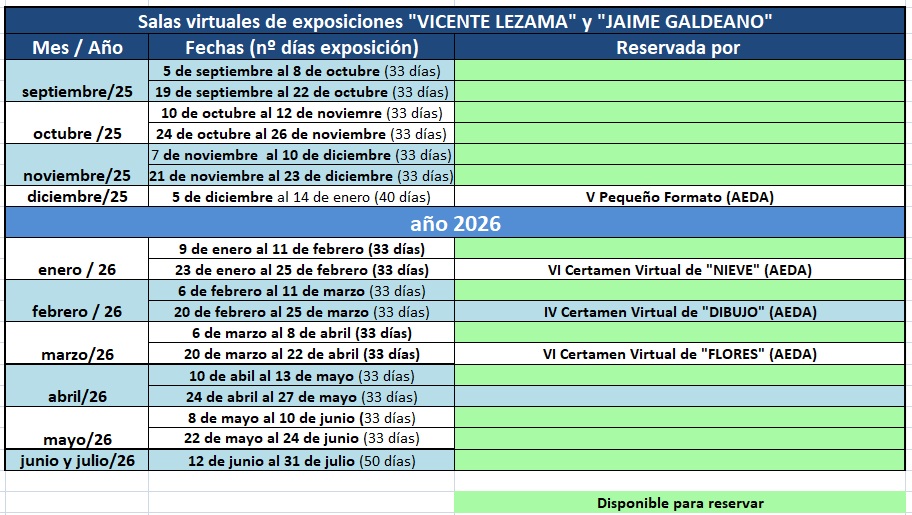 Consulta las condiciones y los calendarios de disponibilidad de las Salas de Exposiciones a continuación: