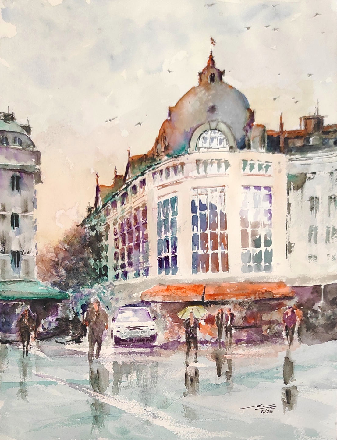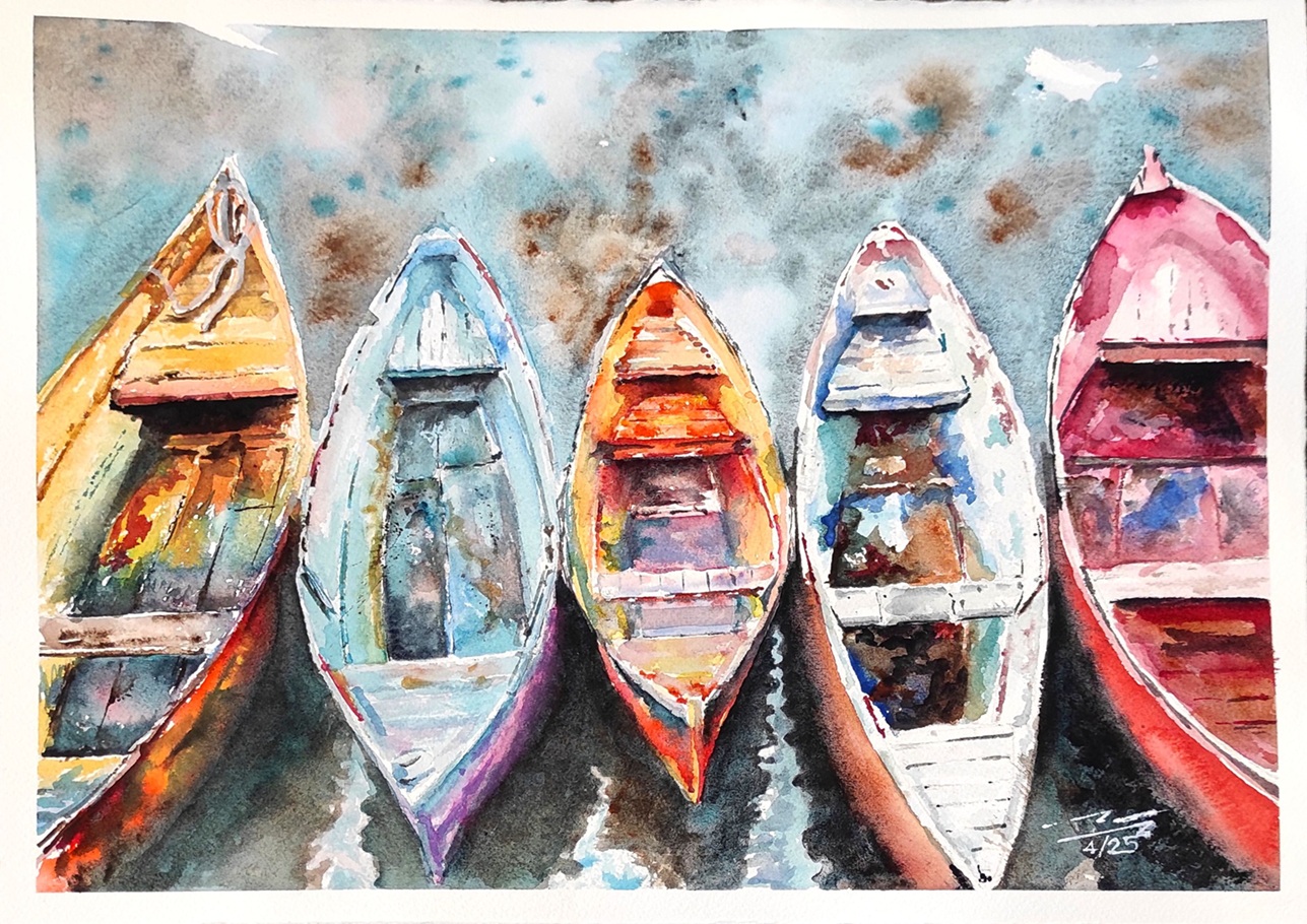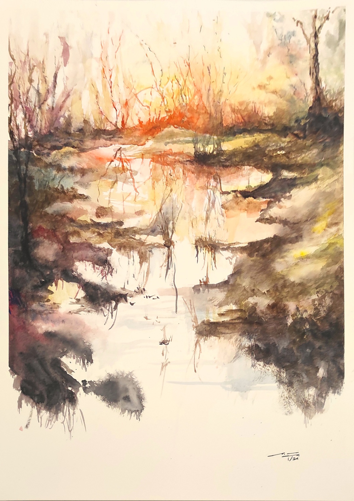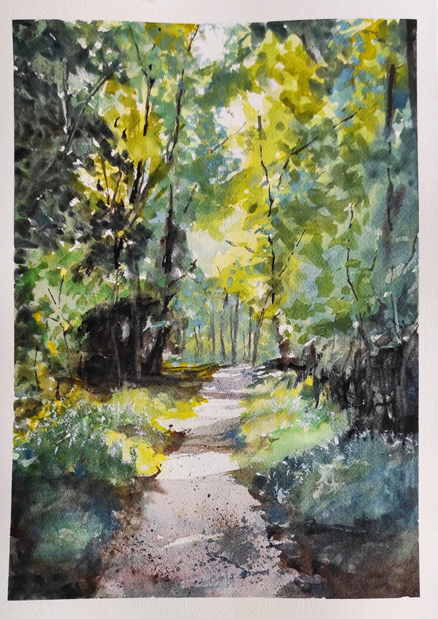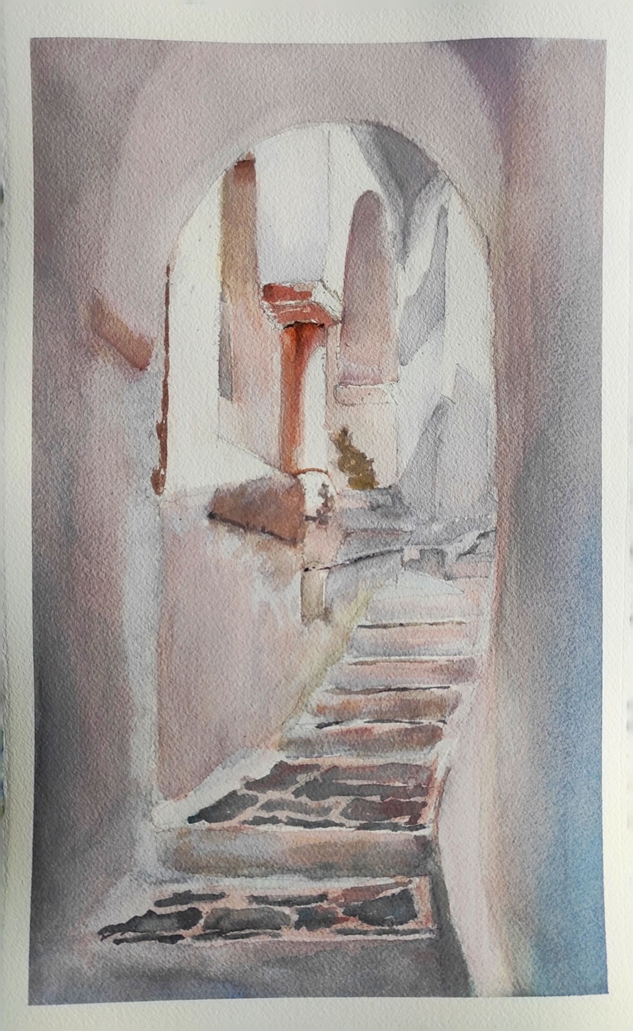 Comienzo en este mundo de la acuarela gracias a mi hija Andrea. Pensó que a alguien al que le gustaba dibujar de joven, debía en su jubilación, recuperar la afición perdida allá por 1982 y se le ocurrió que debía tener un kit básico de acuarelas para comenzar. Así ha sido, en septiembre de 2022 comienza mi andadura desde cero en esta difícil disciplina. Tras ver unos tutoriales de YouTube y procurando perderle el miedo, arranco con formatos pequeños para ir acostumbrándome a los pinceles, los pigmentos, el agua, el papel… Todo nuevo para mí. Estoy recorriendo un camino de manera autodidacta hasta el momento. Son algo más de dos años de grandes sensaciones con la satisfacción de hacer algo con lo que disfruto enormemente…