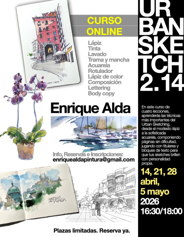 En este curso URBAN SKETCH 2.14 vamos a desmenuzar técnicas básicas de sketching, desde el humilde lápiz a la sofisticada acuarela. Dibujaremos y pintaremos muchos temas, pero sobre todo trataré de enseñaros técnicas, procedimientos, para que vosotros las apliquéis después.
