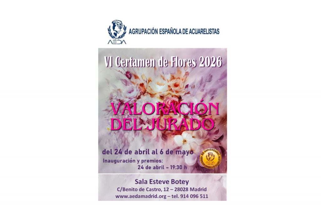 Se muestra seguidamente las 26 imágenes de las acuarelas que se han presentado al «6º Certamen de Flores de AEDA – 2026» para que sean sometidas a la correspondiente valoración del jurado. Cada una de las imágenes viene etiquetada con un número, título de la obra y dimensiones. 1_Una rosa 30×40 -o-o-o-o-o-o-o-o-o- 2_Jarron con flores […]