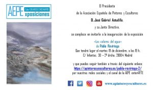 Blog Noticias de socios Inauguración de la exposición «Los colores del agua» de PABLO REVIRIEGO en la sede de AEPE (viernes 19 de diciembre) AEDA_Admin 18 diciembre, 2025